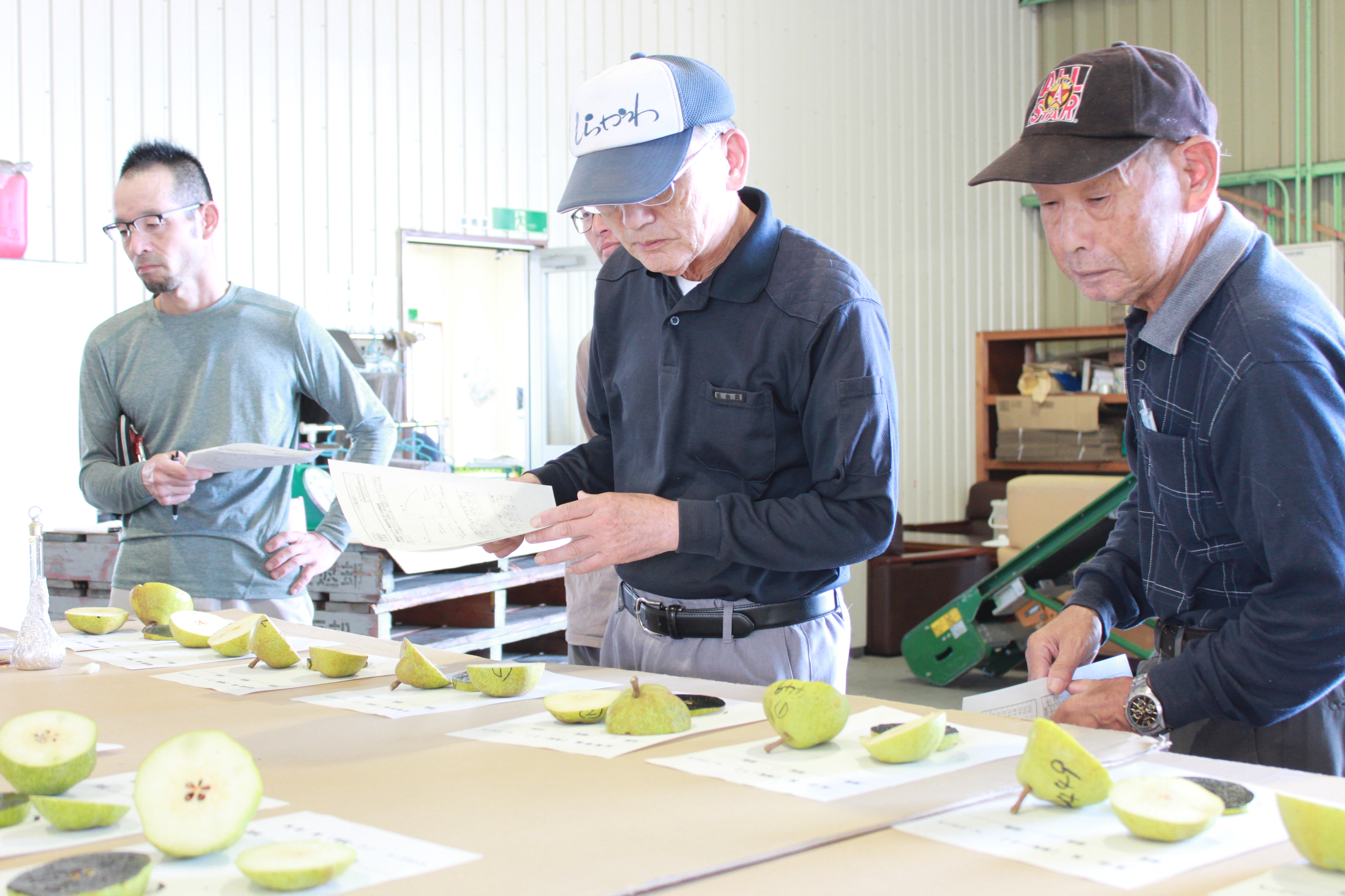 すかがわ地区は9月24日、西袋低温倉庫で令和7年度ラ・フランス収穫判定会を行いました。生産者5人が...