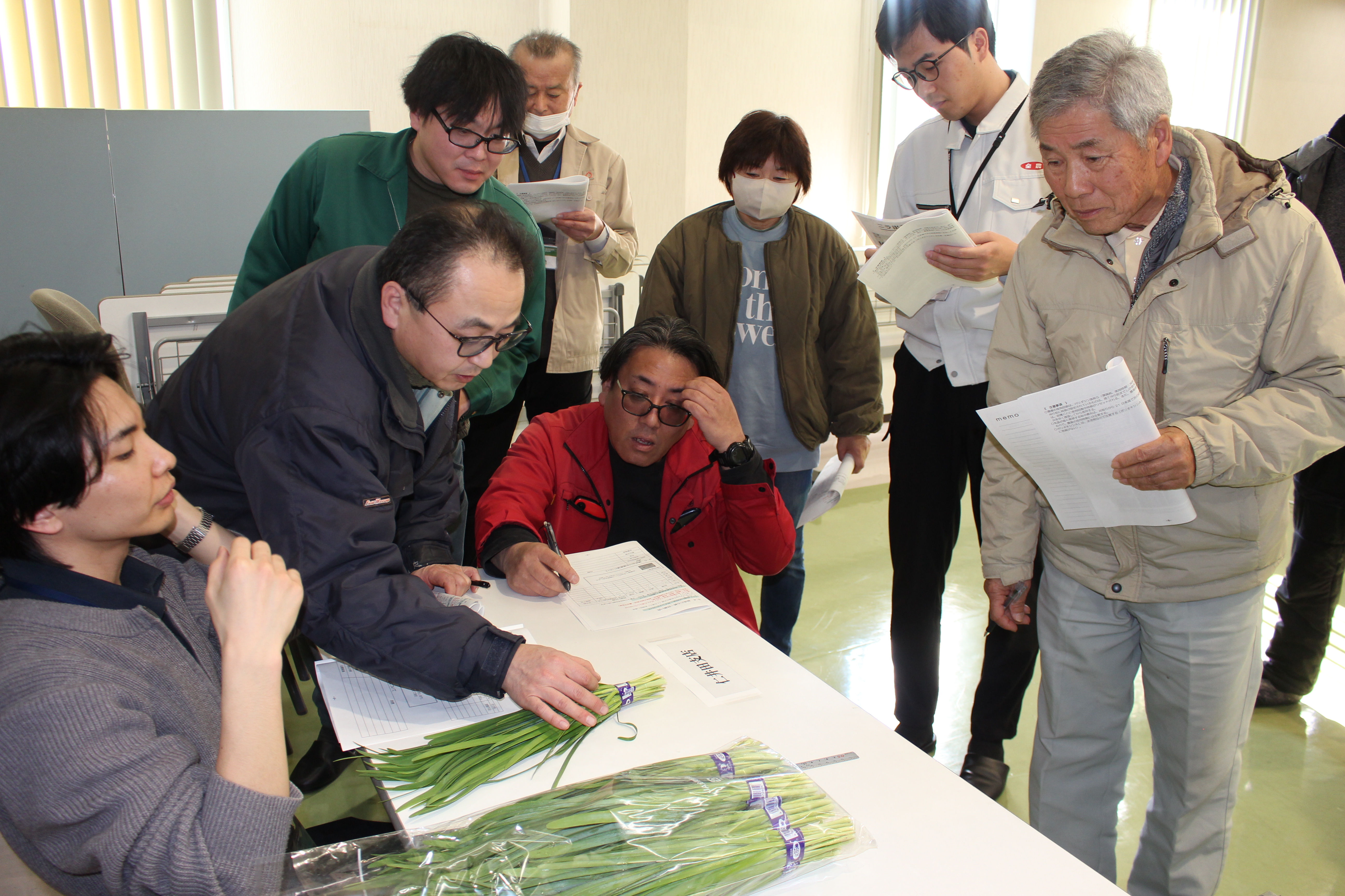 すかがわ地区のにら部会は1月13日、きゅうりん館で秋冬ニラ統一目揃会を開きました。同部会役員と須賀...