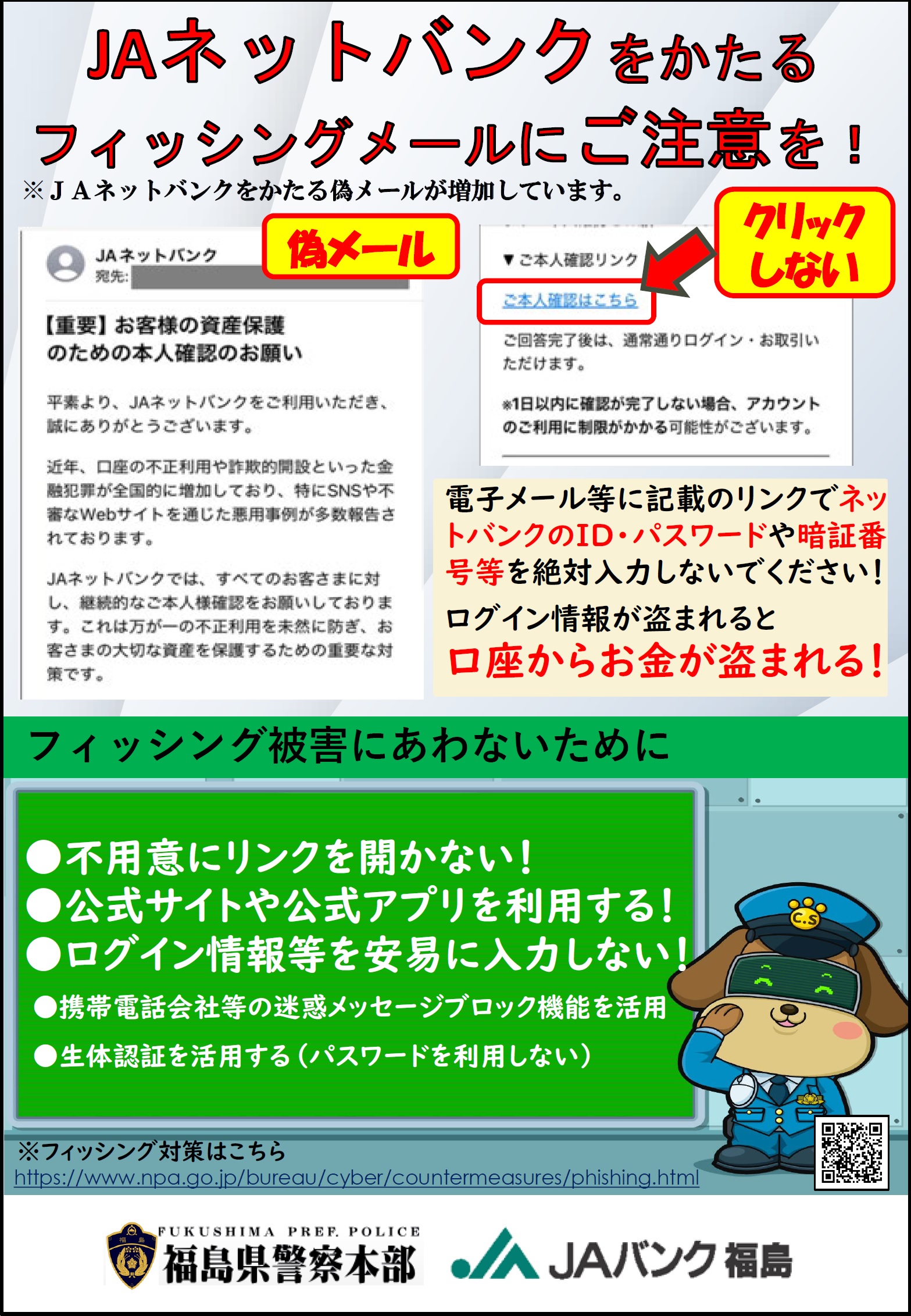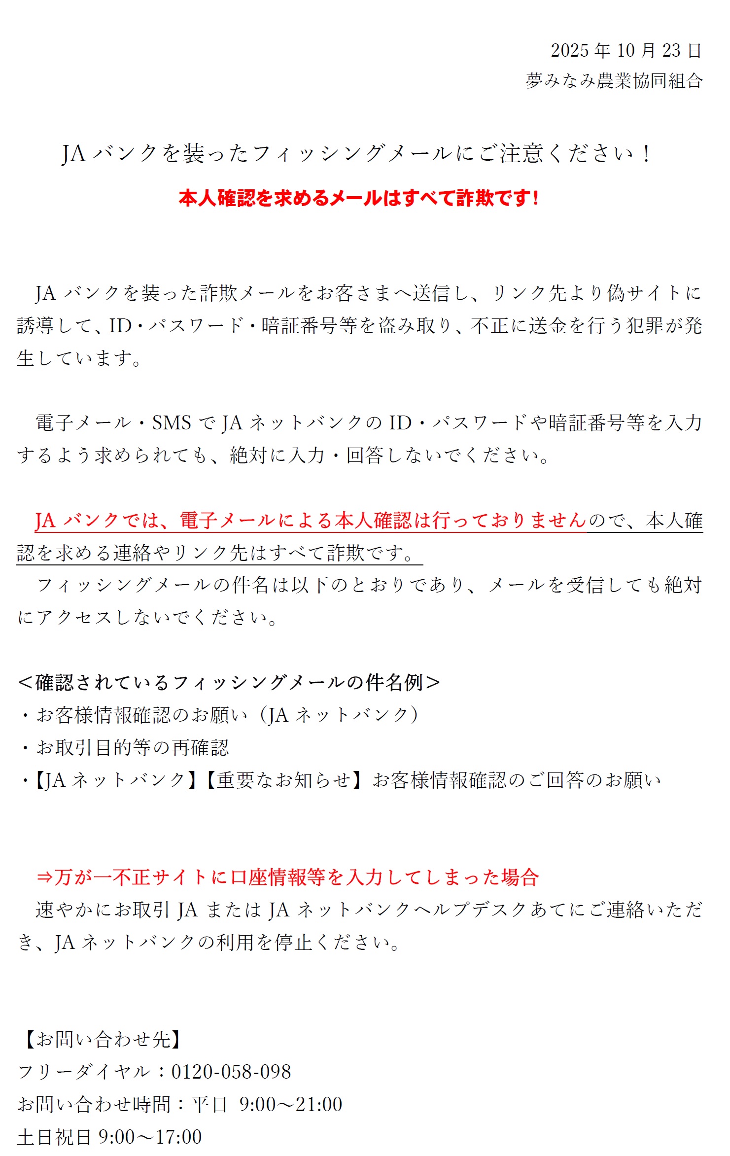 【重要】JAバンクを装ったフィッシングメールにご注意ください!