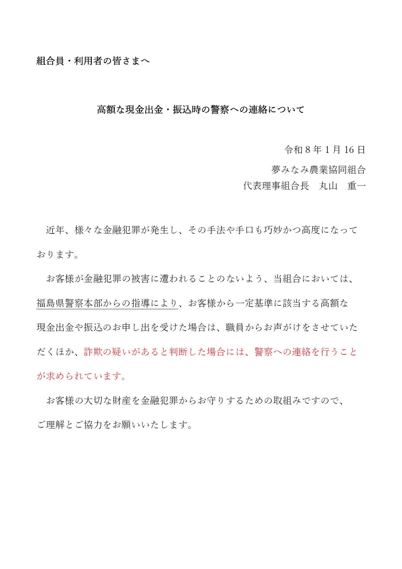 【金融部】高額な現金出金・振込時の警察への連絡について