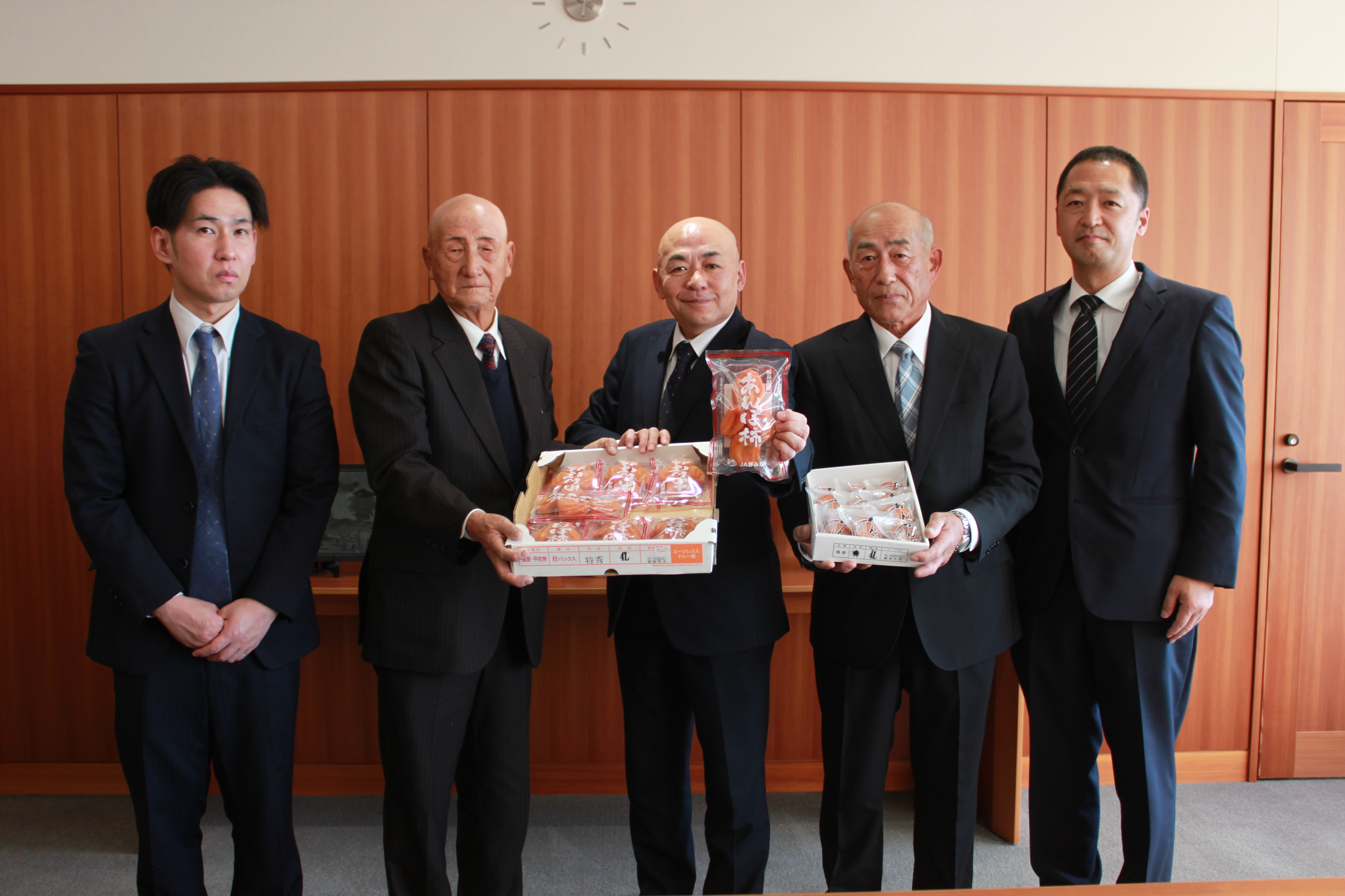 上品な甘みのあんぽ柿を味わって 須賀川市長表敬訪問 あんぽ柿生産研究会は12月17日、令和7...