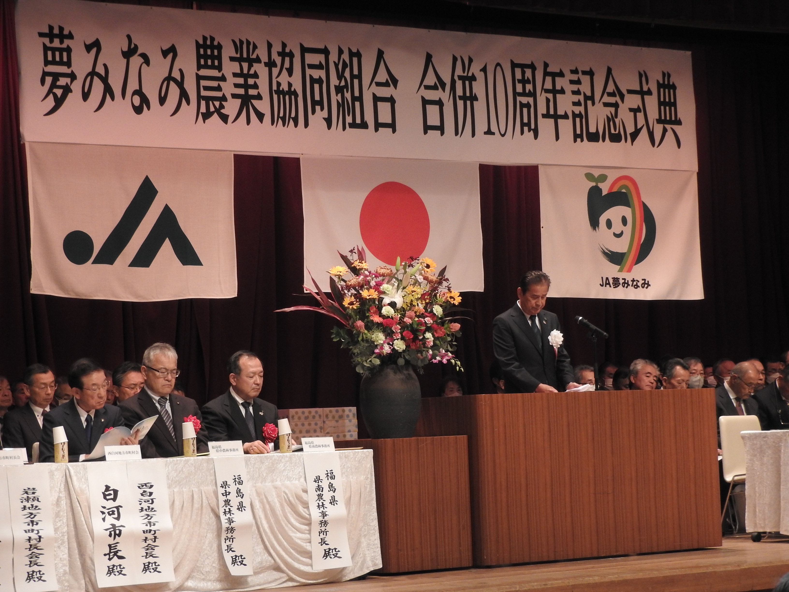 12月5日、白河営農経済本店で合併10周年記念式典・記念講演会を開き、JA役職員、管内市町村長ら関...