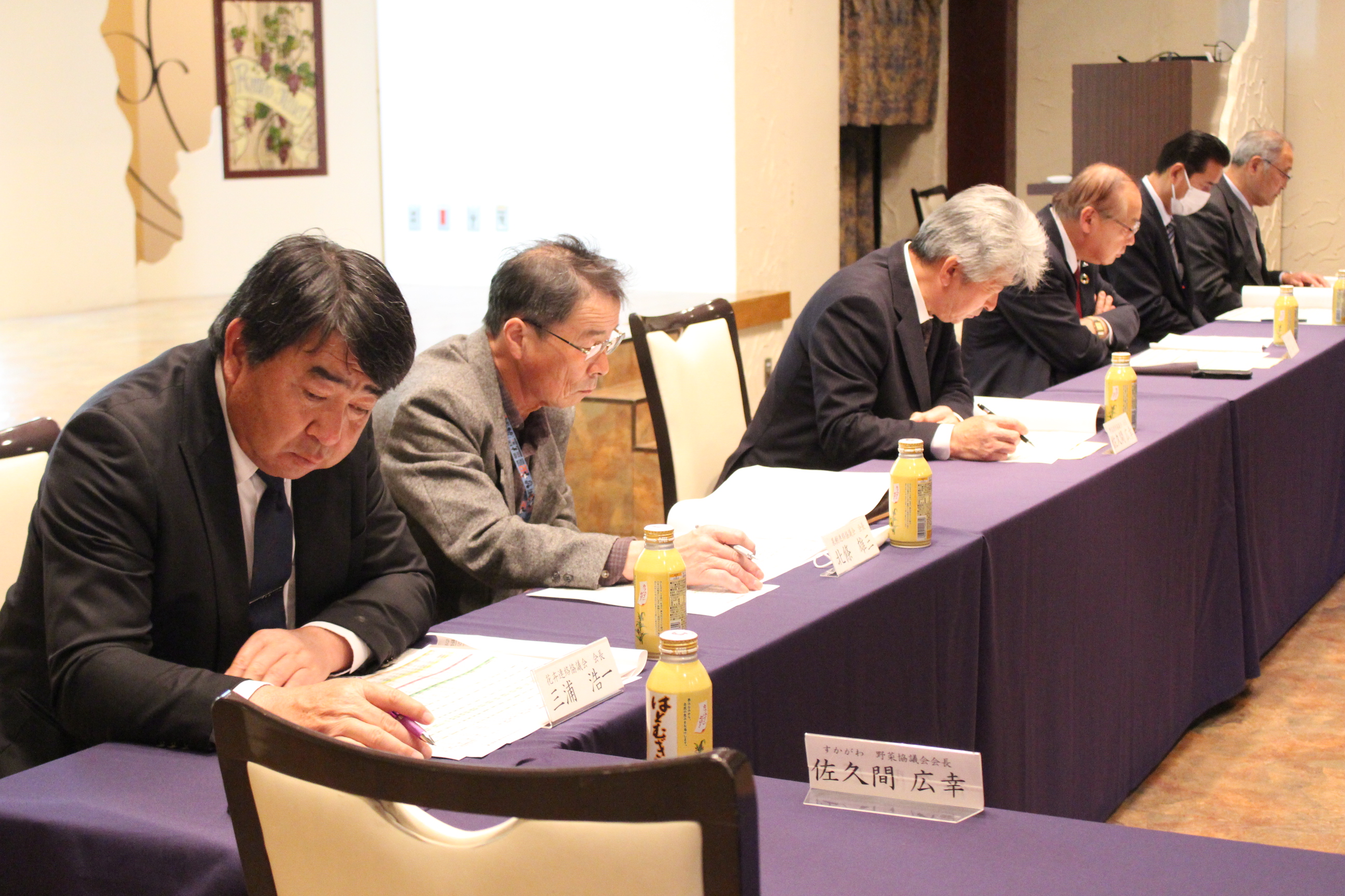 席上、各連絡協議会の役員改選も行い、野菜連絡協議会は佐久間広幸さん(すかがわ地区)、果樹連絡協議会は北條雄三さん(しらかわ地区)、花き連絡協議会は三浦浩一さん(すかがわ地区)が新会長に選ばれました。