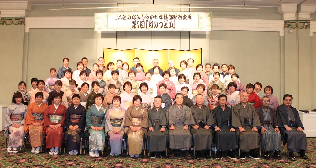 JA夢みなみしらかわ女性部は1月17日、「和のつどい」を開催し、あでやかな和服を身にまとった部員ら39人、JAの橋本正和組合長ら役職員28人が参加しました。白河市の南湖神社を参拝した後、西郷村のグランドエクシブ那須白河で食事と落語を楽しみました。