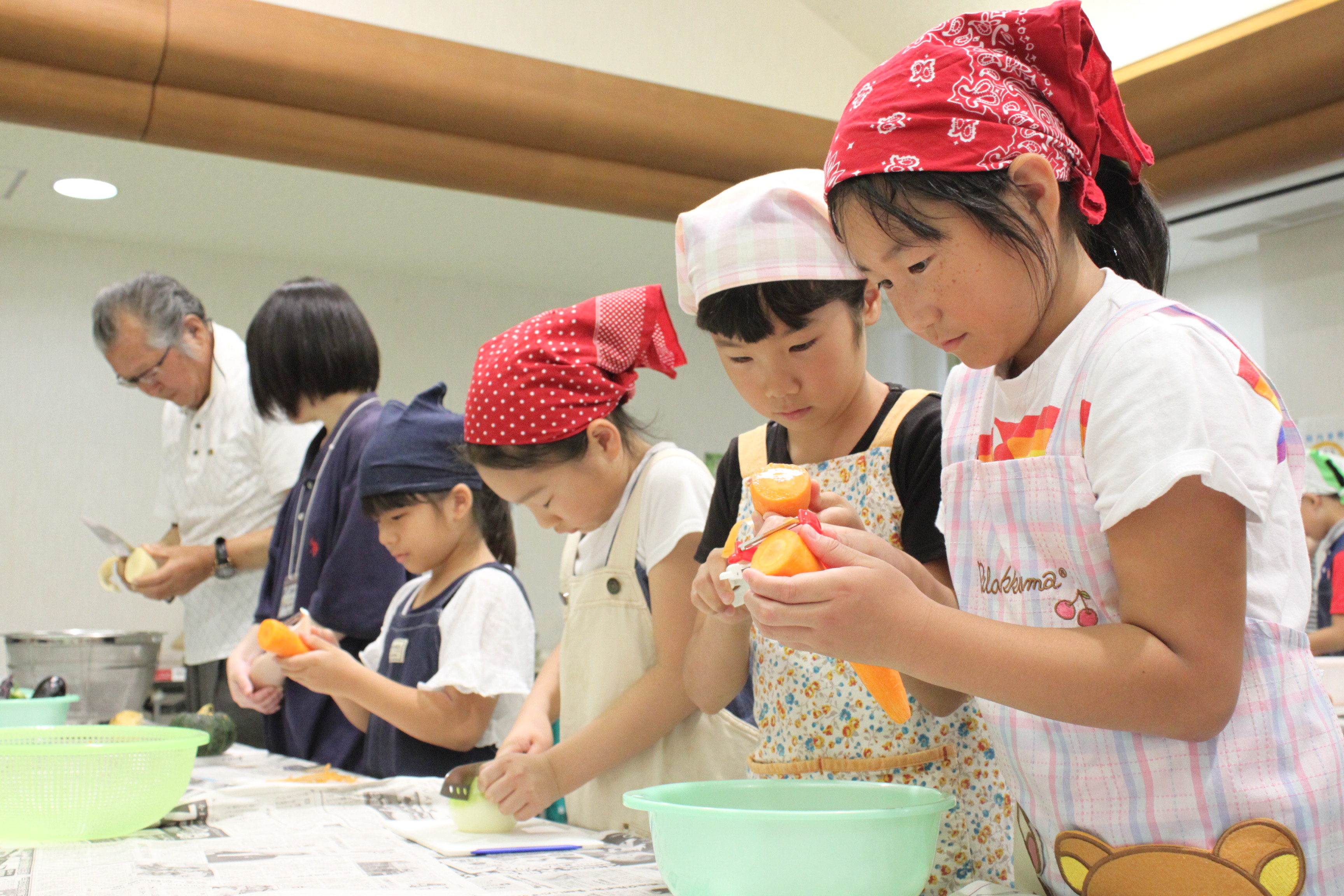 8月24日、JA夢みなみすかがわ地区は、きゅうりん館で第4回あぐりスクールを開催しました。23人が参加し、第1回あぐりスクールで苗を植え生育を観察してきた野菜を使ったカレーづくりと、梨狩り体験を行いました。
