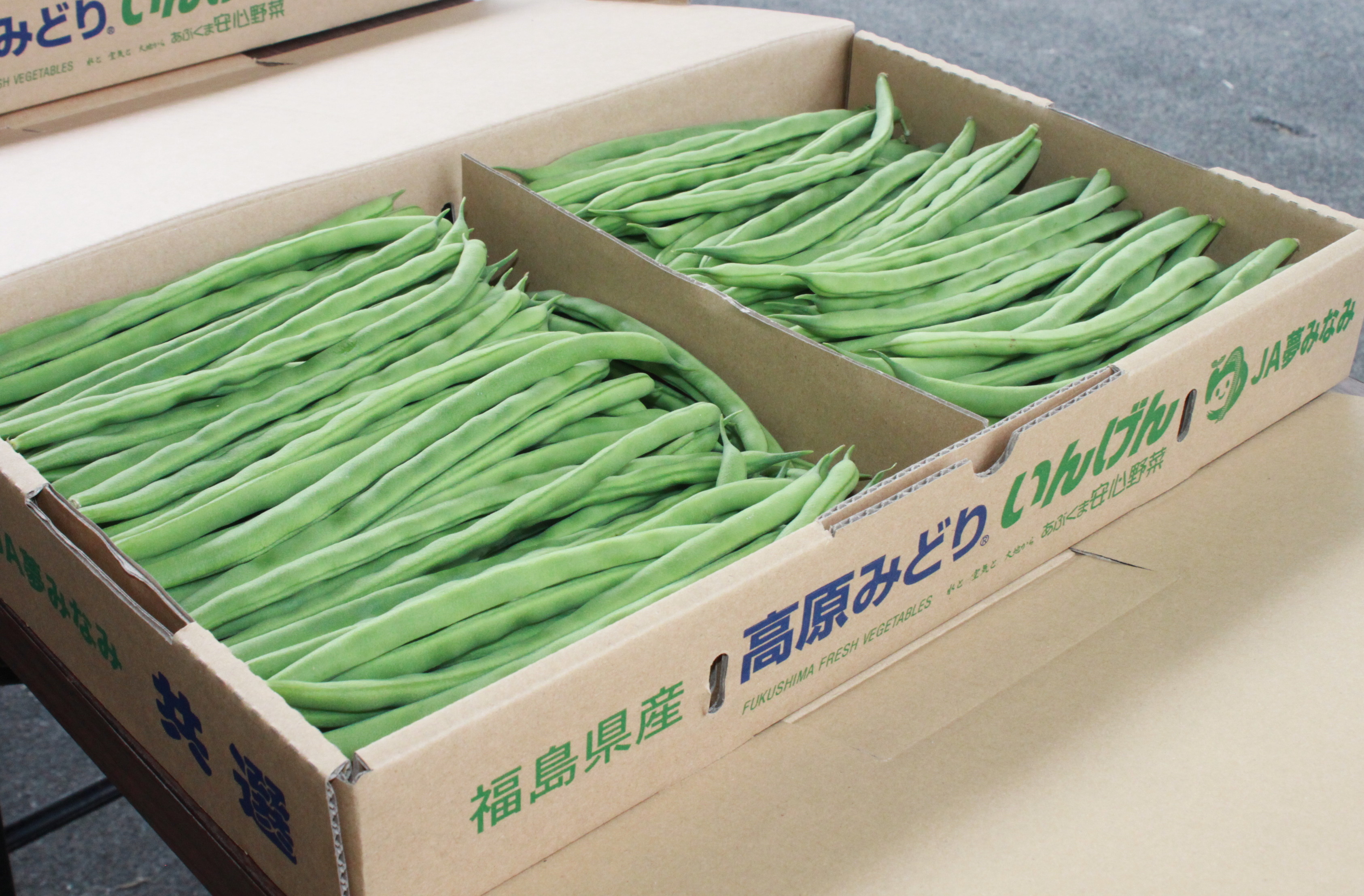 「高原みどり」は平田村・古殿町・玉川村須釜地区で栽培されているブランドのサヤインゲンで、昼夜の寒暖差を生かした鮮やかな緑色が特徴です。令和5年度は生産者98人で8haを作付けし、販売高6000万円を目指します。