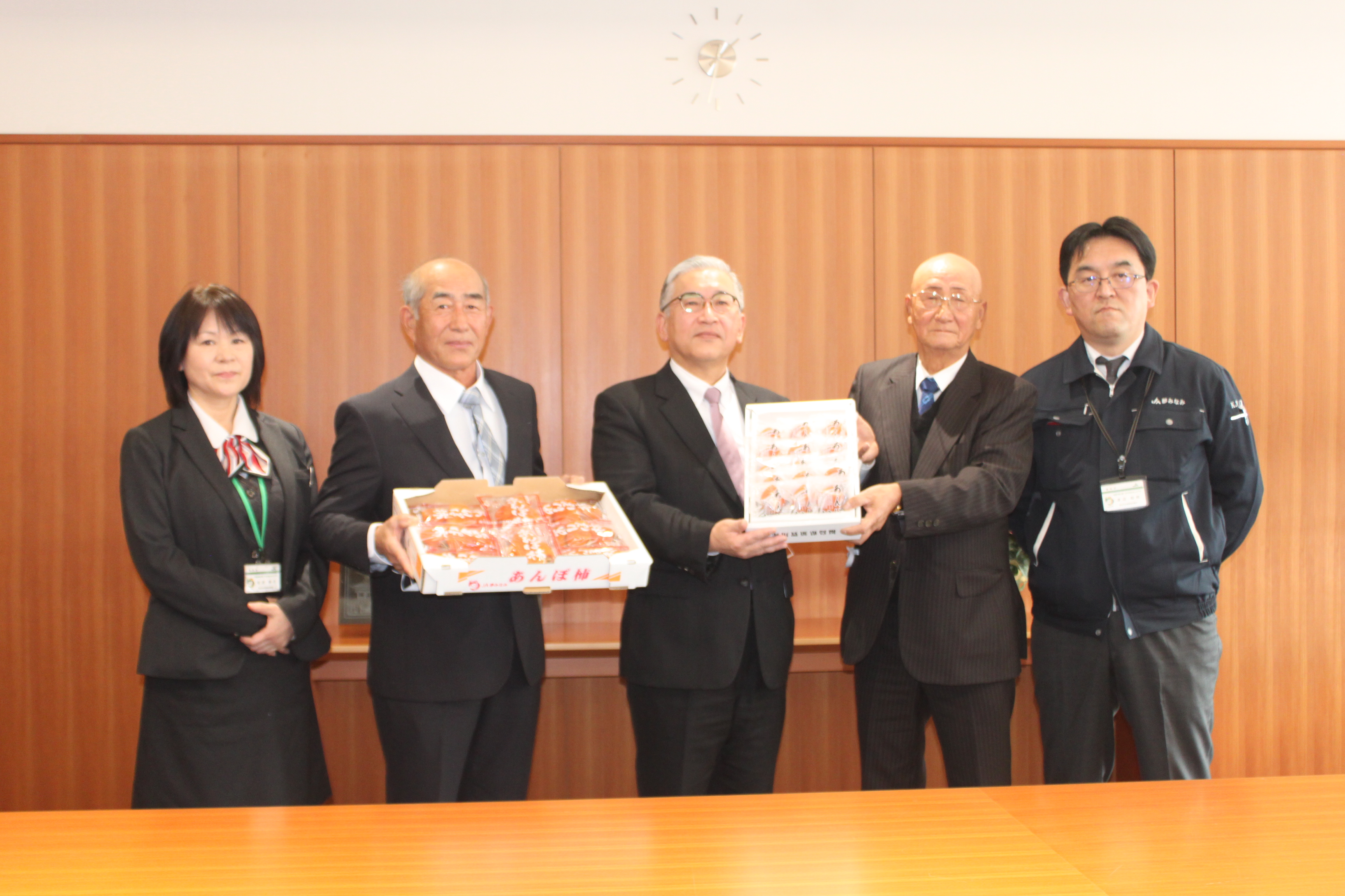 色・甘味、最高の出来/あんぽ柿 須賀川市長に贈る JA夢みなみあんぽ柿生産研究会の相楽芳男会...
